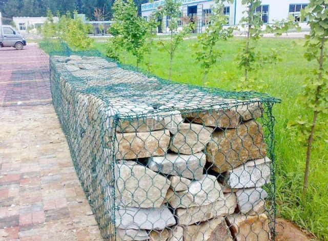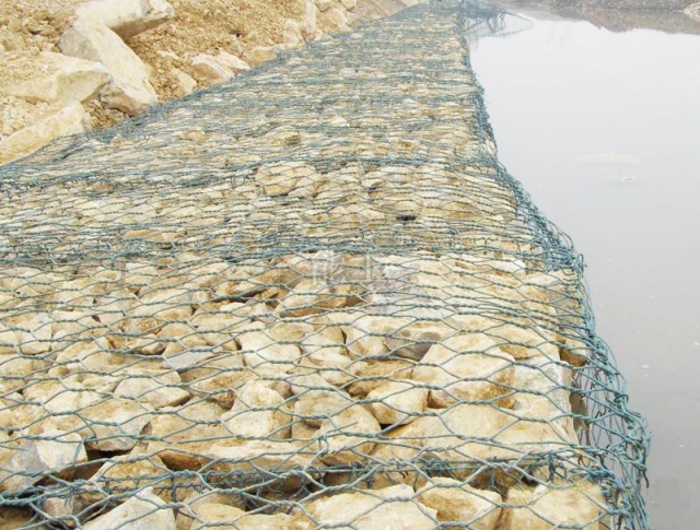 包塑石籠網(wǎng)是金屬線材編織的角形網(wǎng)(六角網(wǎng))制成的網(wǎng)箱,使用的金屬線徑是根據(jù)六角形的大小而不同.如果是金屬鍍層的金屬線六角形,則使用線徑為2.0mm到4.0mm的金屬線,如果是PVC包覆的金屬線編織的六角網(wǎng),則使用外徑為3.0mm到4.5mm的PVC(金屬)線.外框邊緣的線則使用比六角網(wǎng)線粗一號的線。